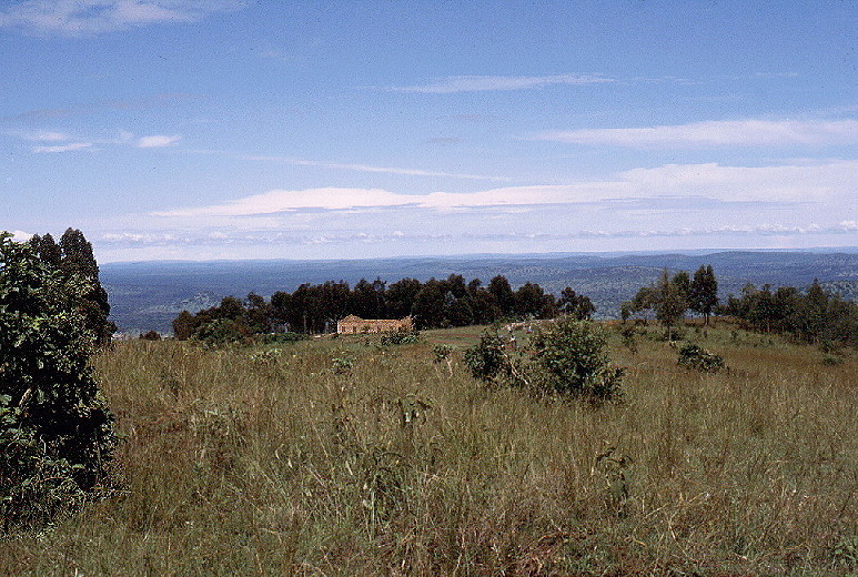 | View from the Karagwe eastern ridge Looking east towards Bukoba (the central gap in the far horizon) December 1989 |