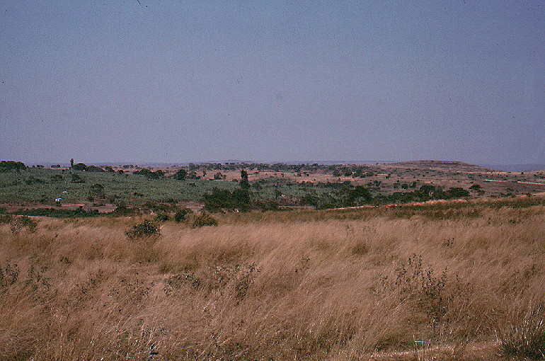 | Shamba area in dry season Typical grassland in foreground Looking south from the Project Nursery Muleba District, August 1989 |