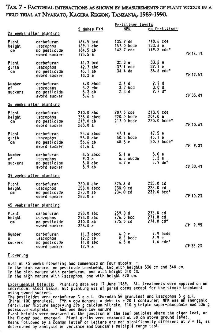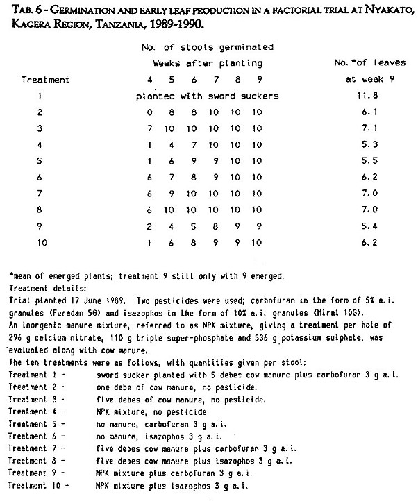 The rates of germination and the early production of leaves from the trial at Nyakato are given in Table 6 and subsequent data on plant vigour are given in Table 7.
