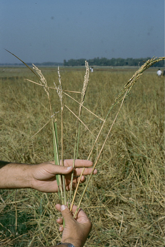 Deepwater Rice - Yellow Stem Borer illustrations - symptoms in whole deepwater rice plants |