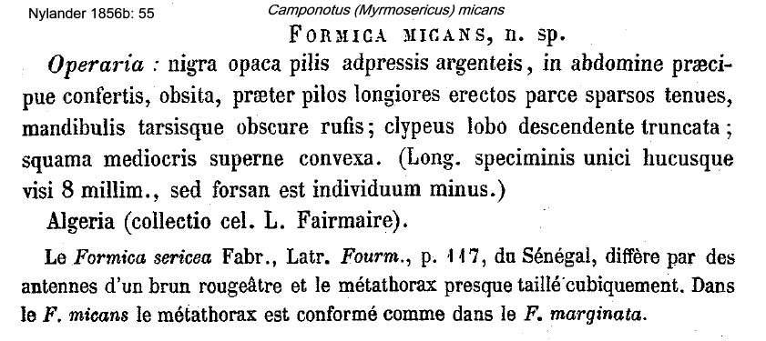 oases (Formica micans n. sp., Nylander, 1856b: 55, worker;