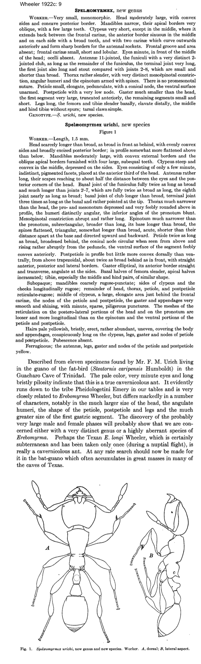 (Spelaeomyrmex urichi new species, Wheeler, 1922c: 9,