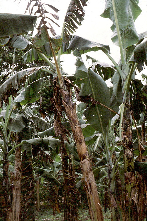 | An Nshansha bunch ready for harvesting At the Kalema D&E trial, Plot F Bukoba District, April 1990 According to the farmer this was the first Matoke for quite some time in the area. |