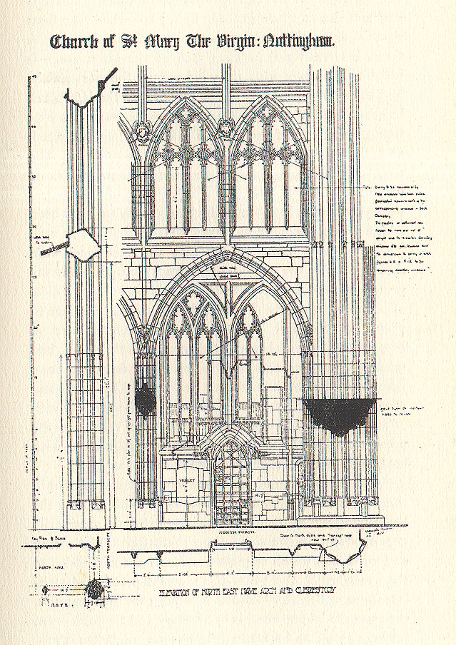 That was the period of English Perpendicular and, of course, where St. Mary's largely fits the definitions. The tomb canopy in the south transept (right), which matches the South Porch and was replicated for the new West Porch in 1848, is earlier and more classically Decorated. Although it has been described as the "Samon Tomb", it seems more likely that it was the now-lost tomb chest and the remaining effigy which fit with the dates of the death of John Samon (around 1416). Jackson (1915) wrote how "as a rule the Perpendicular church has a wooden roof" [i.e. was not vaulted] (p. 122) and the hammer beam was the major form of support for such a roof (p. 125). Characteristic also was the degradation of pillar capitals to a moulded band around the cardinal shafts and even on to the arch moulding running down without interruption to the base of the piers. A further development of the purest phase of the perpendicular was the decoration of walls with panelling with flat traceries. The bat-winged grotesques, so abundant at St. Mary's, are another typical feature of the Perpendicular. G.F. Bodley, who did much of late Victorian design for St. Mary's, delivered a paper to the Royal Academy in 1886, "English Architecture in the Middle Ages" declaiming his view that the golden age in England was the fourteenth century - "Its style is especially an English style. It is not too much to say of it that, at its best, it is quite unsurpassed by any other Gothic work in the world. Tired of the geometry of the earlier manner, the architects of this time invented the grace of the ogee line in their traceries. It was, I make no doubt, the culminating point in the history of Gothic Art". A contemporary writer, Bumpus (undated), wrote a "Guide to Gothic Architecture", in which he dated Decorated as 1270-1350 and Perpendicular - "The harvest-time of all our mediaeval endeavour" - as 1350-1530. His definitions include the ogee - a moulding waved in its contour, concave at the top and convex at the bottom, the earliest being in Salisbury Cathedral, circa 1246. The style, however, was not used extensively until the mid-fourteenth century. |