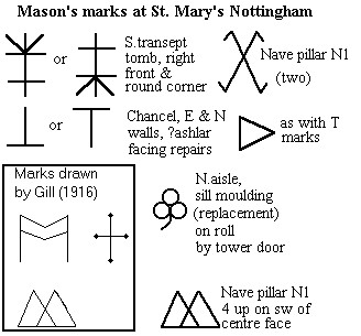 Over a period of time, my list of button cross locations grew quite remarkably. As the search progressed a range of other marks and graffiti were alighted upon, often with a sighting owing much to the changing natural light patterns in this great house of light as the seasons passed. Of the button crosses more later but one fact seemed clear, they are all on some of the smoothest quality stone in the whole building. A second mason's mark, the "tristar" (my name for it) was located on stone work which clearly shared the characteristics of that with button crosses.