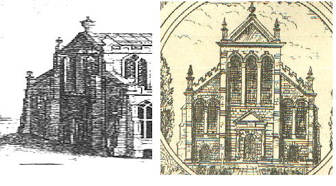 A drawing purportedly dated 1815 also shows the flat top to the South Transept and, as with Badder & Peat's Map, shows the Palladian urn on the west end. |