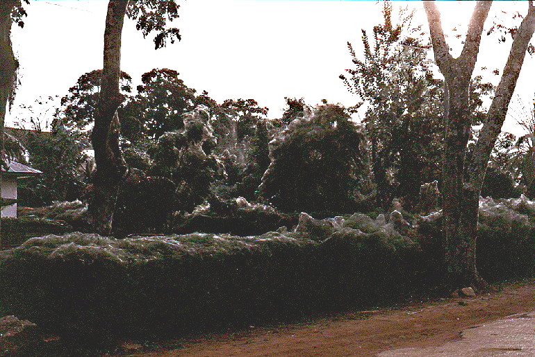 | Bukoba town, following a Lake fly invasion Spiders' webs over everything Bukoba District, June 1989 |