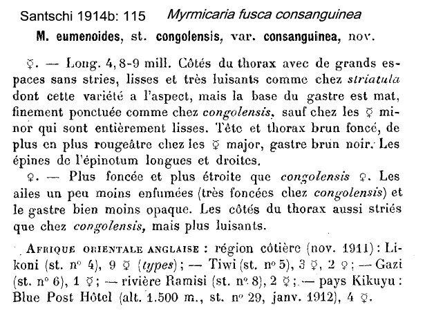 var. consanguinea, nov., Santschi, 1914b: 115; Myrmicaria